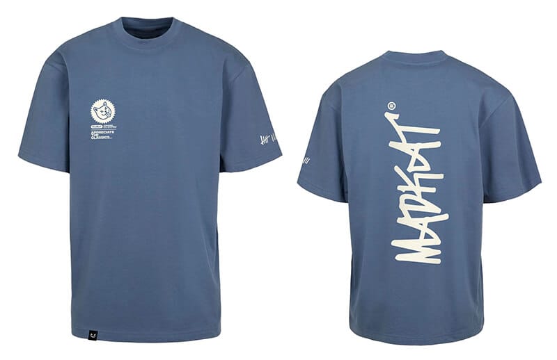 To finish with the collection, we find this regular t-shirt, without being oversize, also belonging to the Tag line. It is the one that has the most models; with availability up to size 2XL, you will find it in black, white, blue, dark gray and beige, all with the already known logo of the brand’s cat on the front and the signature of Mad Kat vertically in the center of the back.